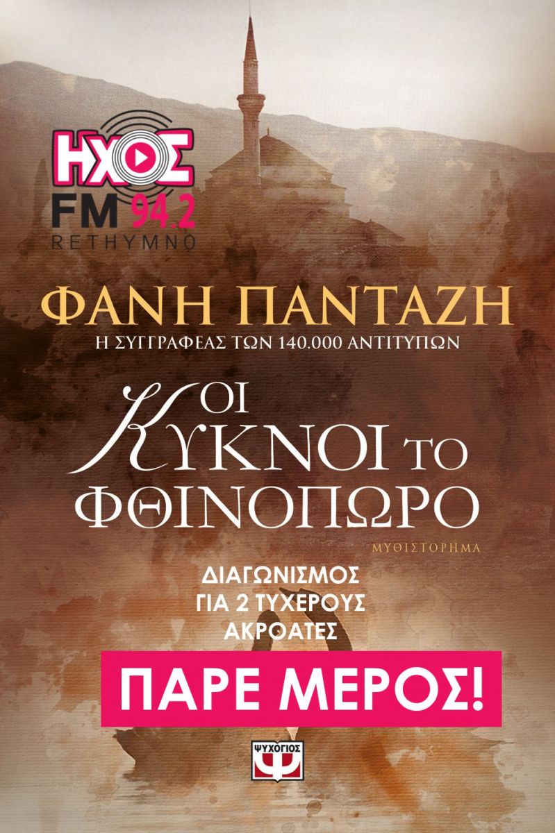 O «Ήχος Fm 94.2» δίνει τη δυνατότητα σε 2 τυχερούς ακροατές να κερδίσουν από 1 αντίτυπο, ο καθένας, του βιβλίου «Οι κύκνοι το φθινόπωρο» της Φανής Πανταζή.