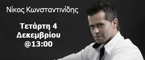 Την Πέμπτη 4 Δεκεμβρίου 2013, η εκπομπή «Κρυφά βήματα», που επιμελείται και παρουσιάζει η Ελευθερία Μπεμπή υποδέχεται στις 13:00, το Νίκο Κωνσταντινίδη για να μιλήσει για τα νέα του τραγούδια καθώς και για τον ίδιο, ώστε να τον γνωρίσουμε καλύτερα. Μείνετε συντονισμένοι!