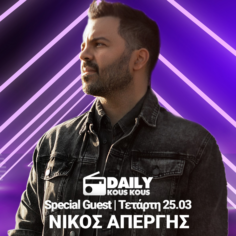 Ο Νίκος Απέργης φιλοξενήθηκε την Τετάρτη 25 Μαρτίου 2020, στην εκπομπή “Daily kous kous”, που παρουσιάζουν ο Alex και η Jella, καθημερινά, στα καλύτερα ραδιόφωνα της Ελλάδας. Για το Ρέθυμνο, η εκπομπή ακούγεται στον “Ήχος Fm 94.2”!
