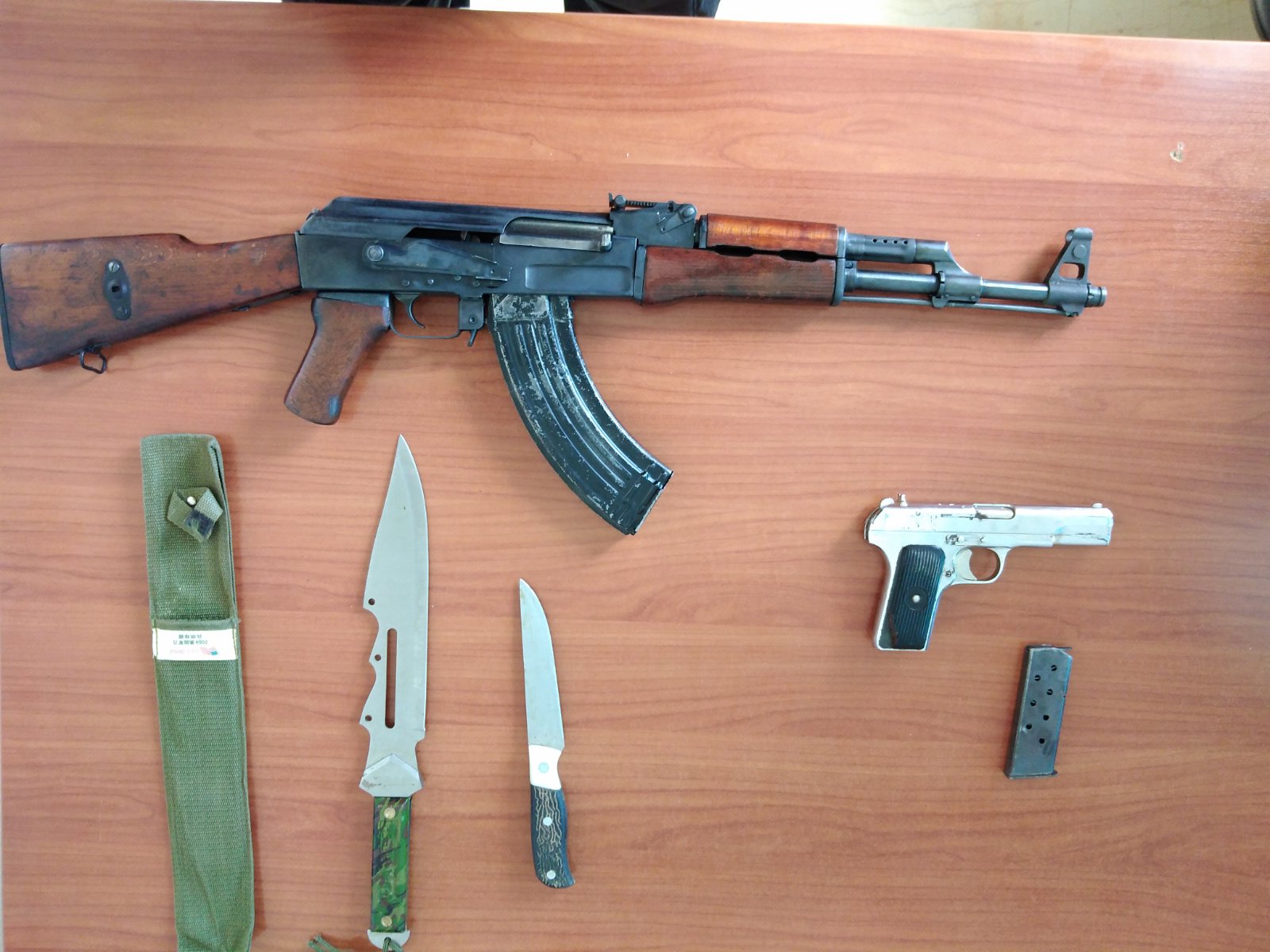 Κατασχέθηκαν πολεμικό όπλο (Kalashnikov), πιστόλι, γεμιστήρες και μαχαίρια