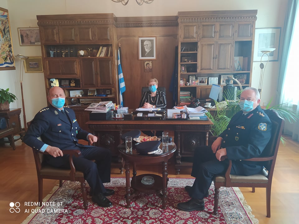 Εθιμοτυπική επίσκεψη στην Αντιπεριφερειάρχη Ρεθύμνης, κα Μαρία Λιονή, πραγματοποίησε σήμερα, ο Γενικός Αστυνομικός Διευθυντής Κρήτης, Υποστράτηγος Αντώνιος Ρουτζάκης, και ο νέος Διευθυντής της Αστυνομικής Διεύθυνσης Ρεθύμνου, Ευάγγελος Αλεβυζάκης, στο πλαίσιο της ανάληψης των καθηκόντων του τελευταίου.