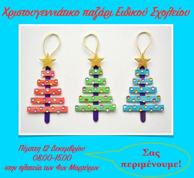 Το Χριστουγεννιάτικο Παζάρι του Συλλόγου Γονέων του Ειδικού Σχολείου, έρχεται να ενισχύσει τις δράσεις, αλλά και όλες τις ανάγκες που προκύπτουν στην καθημερινότητα μας.
